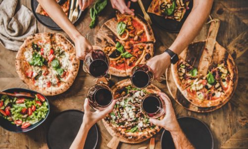 Family,Or,Friends,Having,Pizza,Party,Dinner.,Flat-lay,Of,People